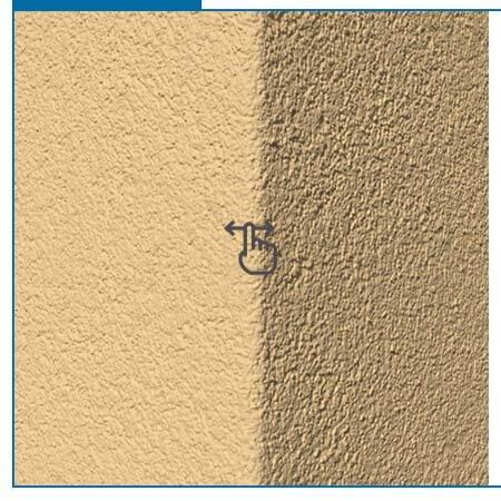 A funkció segítségével kiválaszthatjuk a nekünk tetsző színárnyalatot (az Inspiration színkártya széles palettájáról), beállíthatjuk a felület struktúráját (a szemcseméret alapján), majd az élethű végeredményt egy 3D megjelenítőben tekinthetjük meg. Ezen a bevakolt homlokzat sarokrésze látható, amit az egér segítségével jobbra-balra forgathatunk, így változtatva a fényviszonyokat és az árnyékolást. Ha látjuk, hogyan néz ki a vakolat napfényben és sötétben, nagy eséllyel megalapozottabb döntést hozhatunk.
